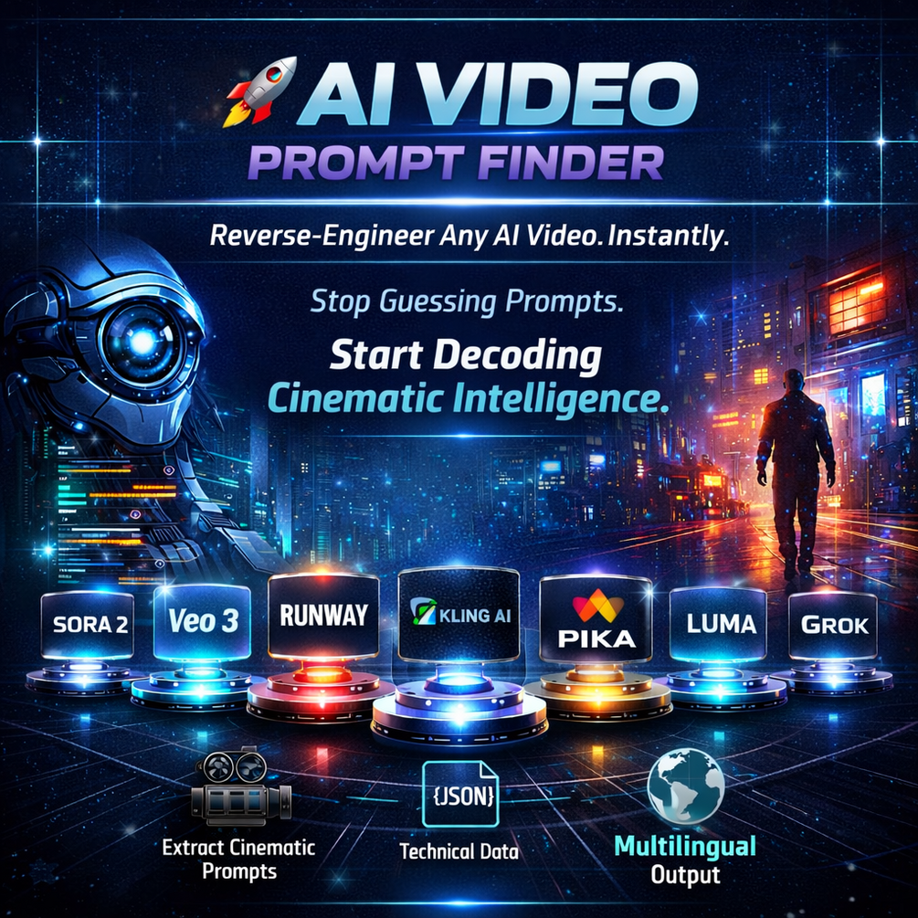 AI Video Prompt Finder is a premium prompt framework and analysis system designed to help you recreate and adapt AI-generated video styles with clarity and structure.
